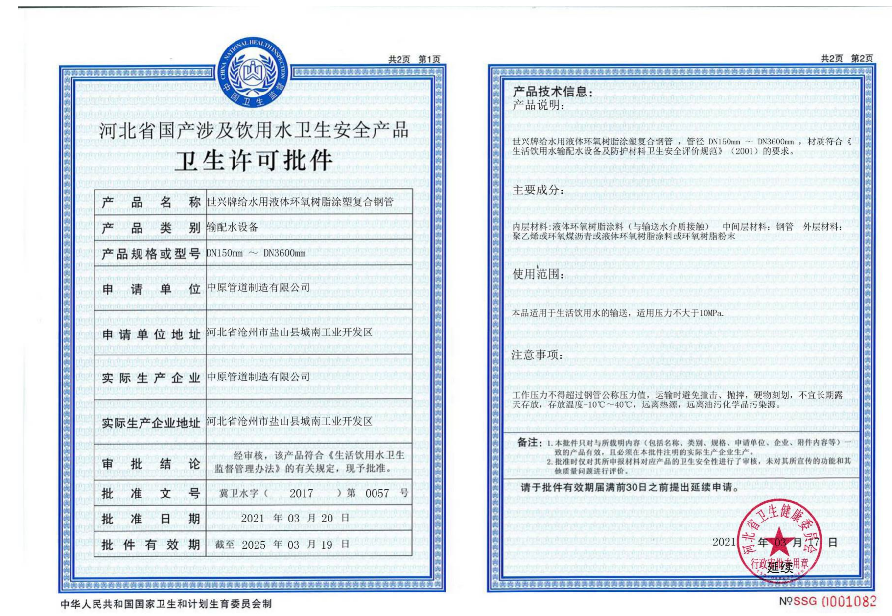 给水用液体环树脂涂塑复合钢管-饮用水卫生安全绿巨人视频黄色-卫生许可批件