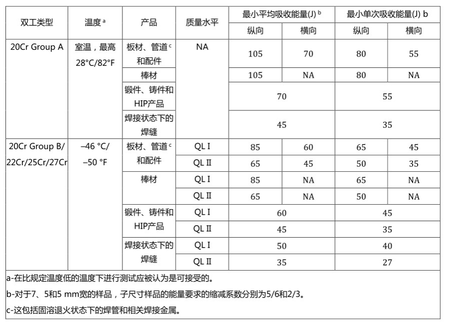 夏比V型缺口冲击韧性试验的最小吸收能量要求